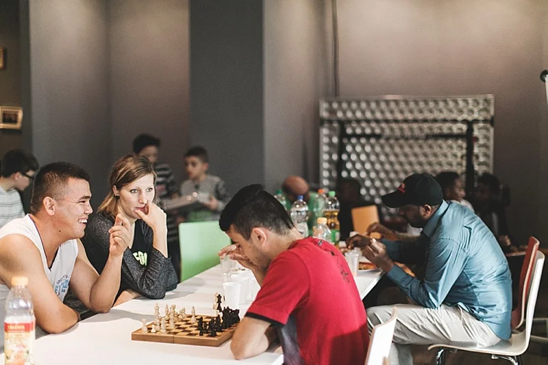 We spend a couple hours walking around the camps, making conversations with people here and there. Eventually we run into Manreal as he waits at the bus stop. We learn that he is on his way to Cafe Hope - a local basement cafe that offers free German language classes to refugees and is run by a local church here in Giessen. Refugees gather underneath a pizza parlor in a basement with 6ft ceilings and rows upon rows of chairs set up for those eager to learn. I smile when I learn the name. Cafe Hope. Yes.