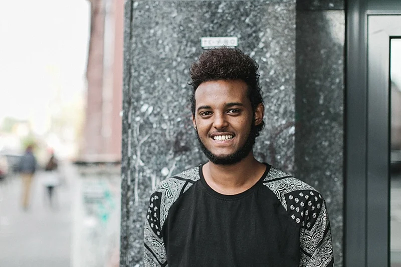 Sami - he makes up another part of the trio. I remember after I took this portrait of Sami, he looked at the image and laughed, exclaiming, "I look like a monster!". Oh Sam, not even a little bit. He is the sweetness in their group - adding the flavor of joy and tenderness even without speaking. Sami is always the first to laugh; I love that about him. He, too, fled Ethiopia, taking the refugee highway like so many others, risking death and horror for the hope of safety. As it is with almost every refugee we spoke with, Sami has no family here in Germany. When I remember this, I think it makes so much sense that he and Mickey and Mical became fast friends (family) when they met at the refugee processing camp in Giessen.